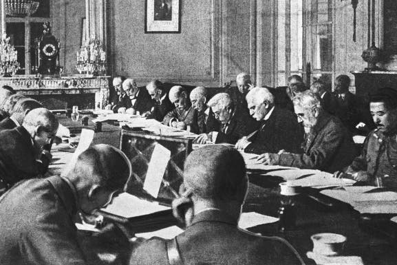 When Germany signed the armistice ending hostilities in the First World War on November 11, 1918, its leaders believed they were accepting a “peace without victory,” as outlined by U.S. President Woodrow Wilson in his famous Fourteen Points. But from the moment the leaders of the victorious Allied nations arrived in France for the peace conference in early 1919, the post-war reality began to diverge sharply from Wilson’s idealistic vision.